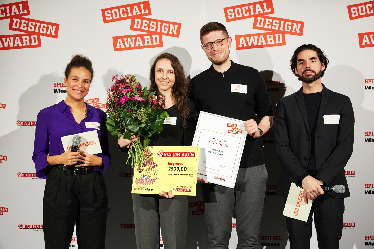 Zur Expertenjury für den Social Design Award 2024 gehören: Friedrich von Borries (Künstler und Professor für Designtheorie an der Hochschule für bildende Künste Hamburg), Jolanthe Kugler (Kuratorin am Vitra Design Museum und Dozentin an der Fachhochschule Nordwestschweiz), Patrick Bombis (Bauhaus), Thorsten Dörting (DER SPIEGEL), Philipp Löwe (DER SPIEGEL) und Marianne Wellershoff (SPIEGEL Wissen).