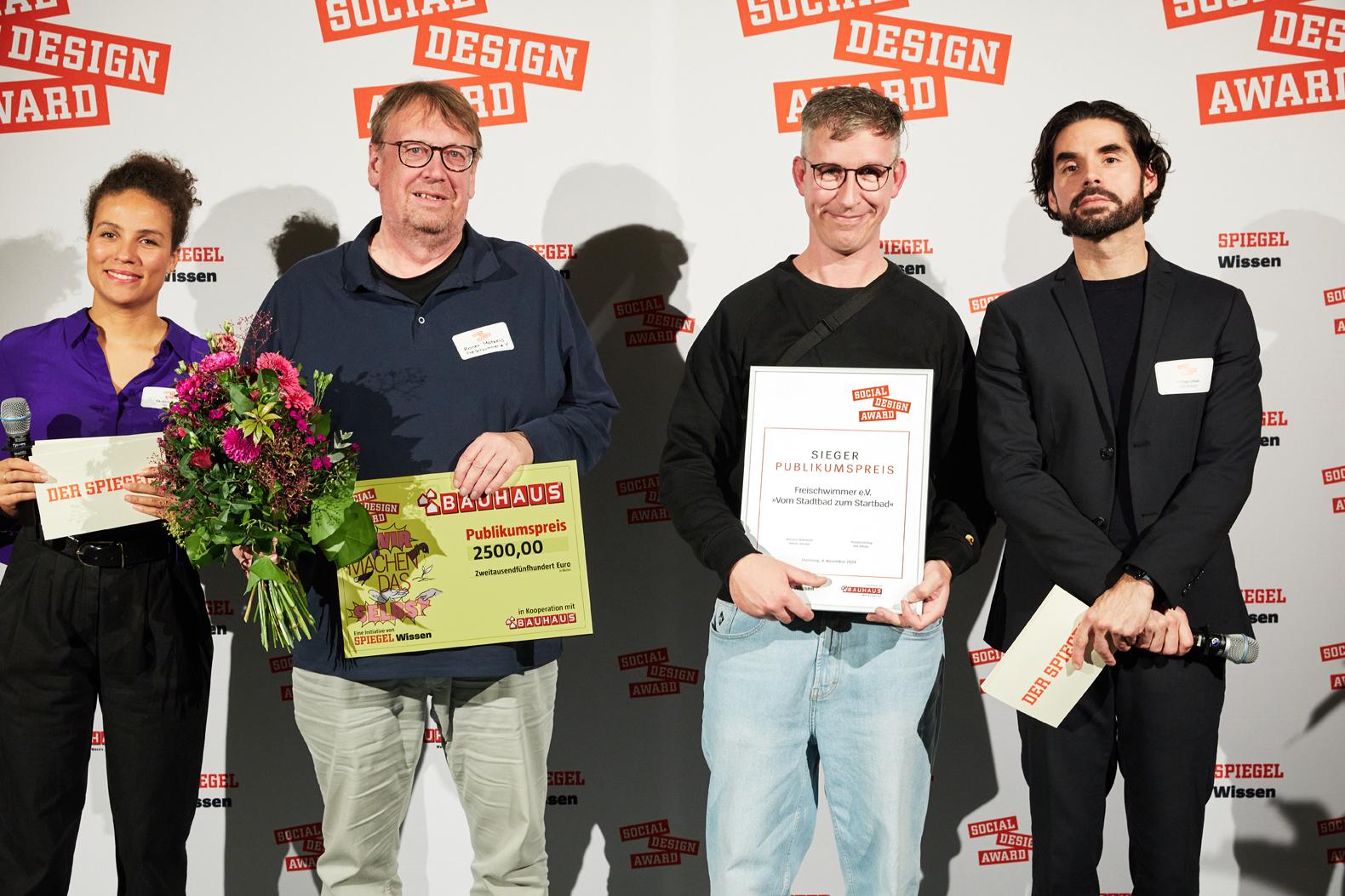 Ein Gemeinschaftsgarten, ein gemeinsamer Dorfladen, ein Repair-Café: Dinge selbst in die Hand zu nehmen, macht unabhängig und stärkt die Gemeinschaft. Deshalb lautete das Motto des Social Design Award in diesem Jahr »Wir machen das selbst!«. Gesucht wurden Projekte, bei denen Menschen zusammen unsere Welt zu einem besseren Ort machen und nicht darauf warten, dass andere das tun. Nun stehen die Gewinner dieses Leserpreises fest, den SPIEGEL WISSEN in Kooperation mit dem Handelsunternehmen Bauhaus bereits zum elften Mal ausgerufen hat. Die Jury zeichnet das Online-Portal »Sternstunden von 45 Minuten« aus, das Lehrkräften Zugang zu einer Unterrichtsbibliothek bietet. Das Publikum wählte auf SPIEGEL.de als Gewinner den Verein Freischwimmer aus Krefeld, der ein altes Schwimmbad zu einer Begegnungsstätte umgestaltet. Beide Preise sind mit jeweils 2.500 Euro dotiert. Außerdem vergibt Bauhaus einen Sonderpreis im Wert von 1.500 Euro an den Maker Space Meyen-Koblenz in Bendorf.